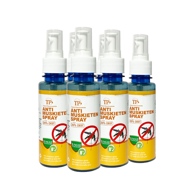 Zoek je een effectieve en snelle manier om muggen te weren? TP Anti-Muskietenspray is een effectieve en eenvoudige oplossing! Met onze TP Anti-Muskietenspray bescherm je jezelf tegen muggensoorten van over de hele wereld. Van de Hollandse steekmug tot de tijger.
